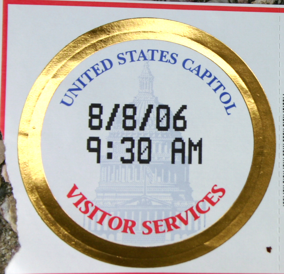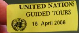 左から、ヨークタウン、議会、国連本部の「シール」。きちんと入場料を支払ったり、セキュリティ・チェックを受けた者に渡され、胸の見えるところに、ガイド・ツアー中や一定の範囲のスペースを自由見学する際の確認対象となる。