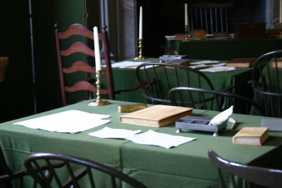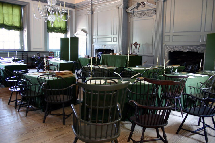 独立宣言の署名者たちの使ったままの机、椅子が保存されている。