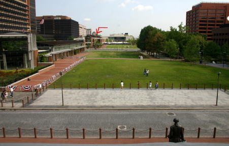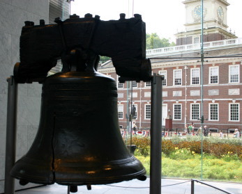 ホールの北側の公園内に有名な「自由の鐘」を展示している建物がある。7月8日に「独立宣言」が初めて一般に朗読された時、ホールの塔にあったこの鐘が鳴らされた。1835年に最高裁長官の死を悼むために鳴らした時ひびが入ったと言われ、1846年に鳴らされて以降、鳴らされていない。そしてこの場に移された。ここに入るのにも、ベルトをはずされるセキュリティ・チェックがなされた。