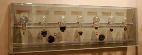 アメリカ国立博物館には、エジソンが電灯発明のため研究した様々なガラスやフィラメントについての展示がある。1879年に白熱電球が発明された。
