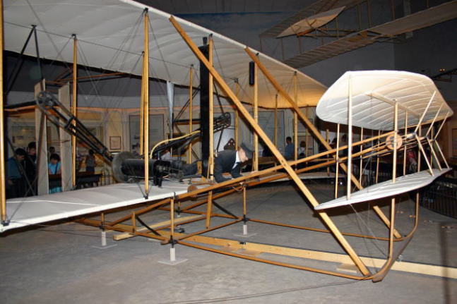 ワシントンD.C.のモールの国立航空宇宙博物館には、ライト兄弟の成功した人類初の「飛行機」「フライヤー1号」が展示されている。1903年ノースカロライナ州キルデビルの丘で地上3mを12秒間37mを飛んだ。