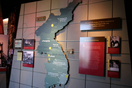 戦争は北朝鮮軍が優勢で釜山まで侵攻したが、マッカーサーを司令官としたUSAら「国連軍」を名乗る連合軍が仁川に上陸し、北朝鮮軍を押し戻したが、今度は中国が北朝鮮に援軍を出し、38度線近辺で戦線膠着となってしまった。