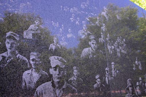 記念碑は独特の彫り方で、兵士らの姿が浮き出るようになっている 。