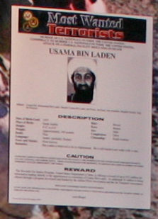 アフガン戦争の展示。ビンラーディン「Wanted」であった。