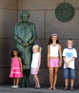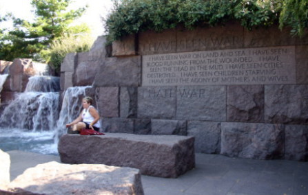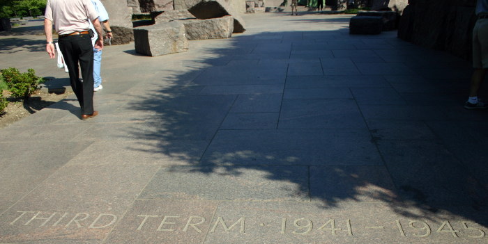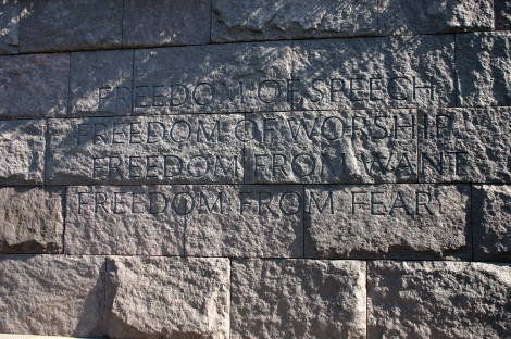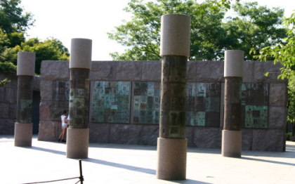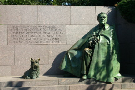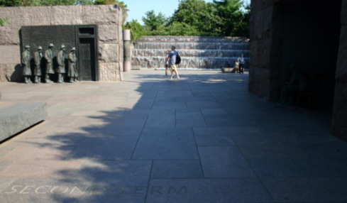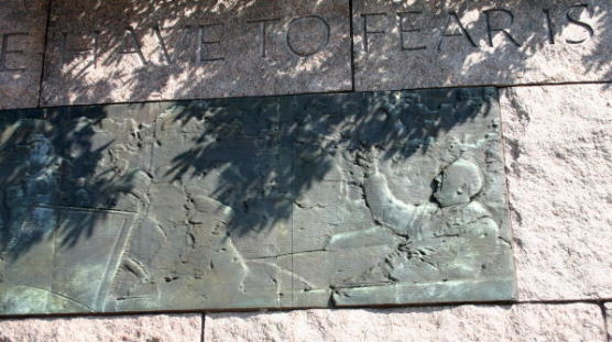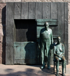 ワシントンのモールの西側、リンカーン記念堂の南東、タイダル・ベースンの畔に「フランクリン・ルーズベルト・メモリアル」がある。まず、車椅子に乗ったルーズベルト像がある。彼はハーバード大学を卒業し、ニューヨーク州の上院議員を務めて、1920年には民主党副大統領候補になるが落選。次の年1921年、39歳で小児麻痺に罹り、闘病生活を余儀なくされる。しかし、不屈の精神で政界に復帰し、1928年ニューヨーク州知事に当選。そして1929年から始まった大恐慌の最中、1932年、大統領に選出された。