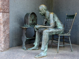 ルーズベルトはラジオを通じて人々に政策や見通しを語りかけた。いわゆる「炉辺談話」である。それを聞く人のモニュメント。