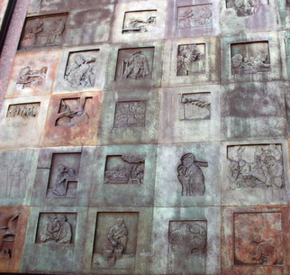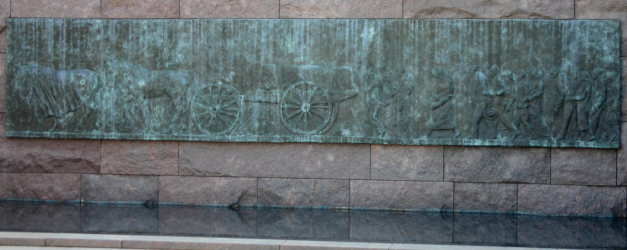 第4の部分。妻のエレナの像。1941年教書の演説で語った有名な4つの自由のフレーズ。「言論の自由・信仰の自由・欠乏からの自由・恐怖からの自由」。そして1945年4月脳溢血でルーズベルトは亡くなったが葬列のレリーフがある。