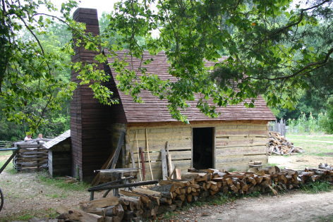 ウィリアムズバーグのビジター・センターから歴史地区に入る右手にある中規模な、18世紀のままを復元した農場である。実際の農場はヨーク地方にあったとのことで、当時の40ha前後の広さの農地に換金作物としてタバコ、トウモロコシ、小麦などを栽培していた農場を代表的に再現したものである。また、牛や馬、鶏を飼っていた。農園内に奴隷小屋が再現されていた。奴隷を演じていたスタッフの女性に聞いたら「奴隷は多い時で15人いてどんな仕事でもやらされた。」とのこと(私のリスニングが間違ってない限り)。このような中くらいの農園では、農園主も奴隷と共に朝から晩まで働かないとなかなか利益があがらなかったという。イメージしていたような大農場の奴隷小屋ではなかったが、その質素な建物にふれ、初めて「奴隷」というものの存在を感じた。