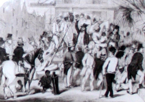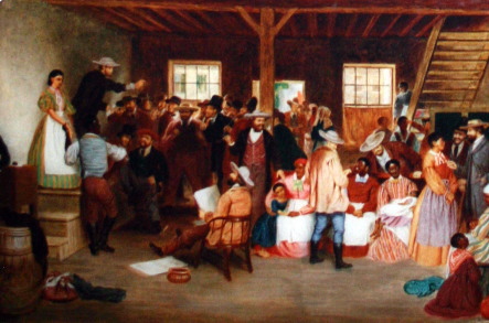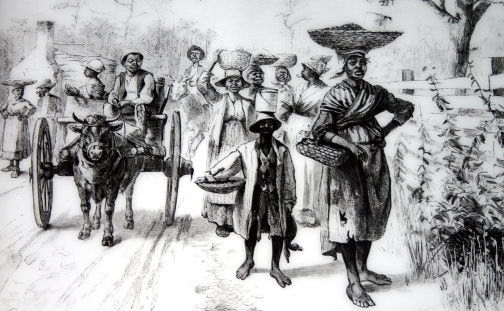 USA、いや世界の歴史を考える際、深刻な問題として考えなければならないのが黒人奴隷制である。USAの地には1619年ヴァージニア植民地に初めて20人の黒人が連れてこられた(奴隷かどうかについては諸説あり)。召使などとして家事に従事させられた者たちもいたが、多くは南部の大農場(プランテーション)で働かされた。初めはタバコ栽培の、そして特に19世紀に入るとイギリスなどへの綿花栽培の労働力として大量の黒人奴隷が連行されて来た。1860年の国勢調査では400万人近くがいた。黒人奴隷は極めて安価な大量の労働力として「期待」されたのであった。