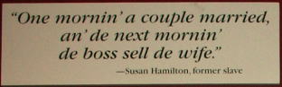 ワシントンD.C.の歴史博物館には「延ばされた約束(直訳)」という、奴隷制に関する展示がある。サウスカロライナ州の農園の奴隷の様子を中心にその生活が示されている。