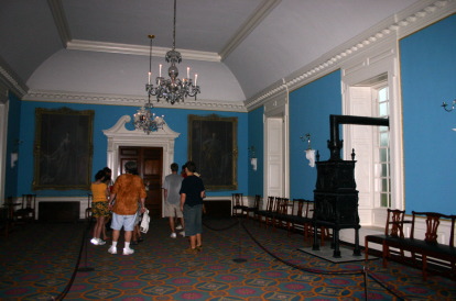 また、東の端の方には「州議事堂」がある。パトリック・ヘンリーが「我に自由を与えよ。さもなくば死を。」と独立要求の熱弁をふるった所である。ジェファソンも議員としてここで活動した。また、サミットの主要会談場となり、レーガン大統領、イギリスのサッチャー首相、日本の中曽根首相らが話し合った所でもある。内部見学できるが、私は事前学習不足でサミットの主要会談場だということを知らずに行ったので、見学、撮影をしなかったのが心残りである。この他にもいくつもの建物が内部まで復元され、自由に見られたり、ガイドによるツアーに参加しての見学となっている。各地区を繋ぐ巡回バスも出ていて便利である。