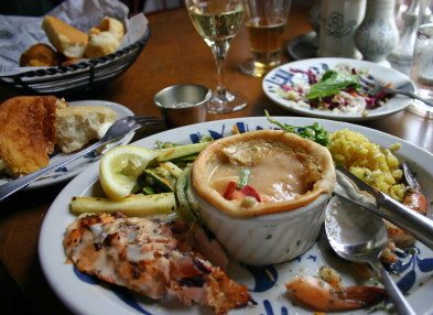 レストランも「タバーン」というこの時代のスタイルで、説明によると料理も往時のものだという。すべてが18世紀だ。ほとんどのタバーンが要予約であるのでお昼ころ予約の電話を入れたほうがいい。私もなんとか拙い英語で自分で電話し、本当に通じたか心配だったが、「Christiana Cambell's TAVERN」というCapitolの近くのシーフードのタバーンはちゃんと私を迎えてくれた。スタッフがなにやら当時の歌を歌ってくれるサービスまであった。料理(海の幸のスープをパンで包んだものや海老や魚を焼いてつけたもの)の味もまずまずで、ウィリアムズバーグの至福の夜は暮れていった。
