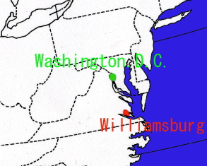 ワシントンからグレイハウンド・バスで約4時間。ヴァージニア州ウィリアムズバーグがある。1699年から1780年まで大陸植民地の中心の一つヴァージニア植民地の首都であった。それまでのジェームズタウンから6キロメートル内陸にあるが、二つの川に挟まれて交通の便がよく、気候条件も良かったため遷都された。町の名前は、名誉革命でイギリスの王位に就いたウィリアム3世にちなむ。その後衰退したが、1926年以降、ジョン・ロックフェラー・ジュニアの私財投資により、かつての栄光の建築物約120が復元させられ、18世紀のアメリカをしのぶ一大テーマ・パークになった。1983年には当時のレーガン大統領によりウィリアムズバーグ・サミットが開催された。夏は全米各地からの家族連れで賑わっている。