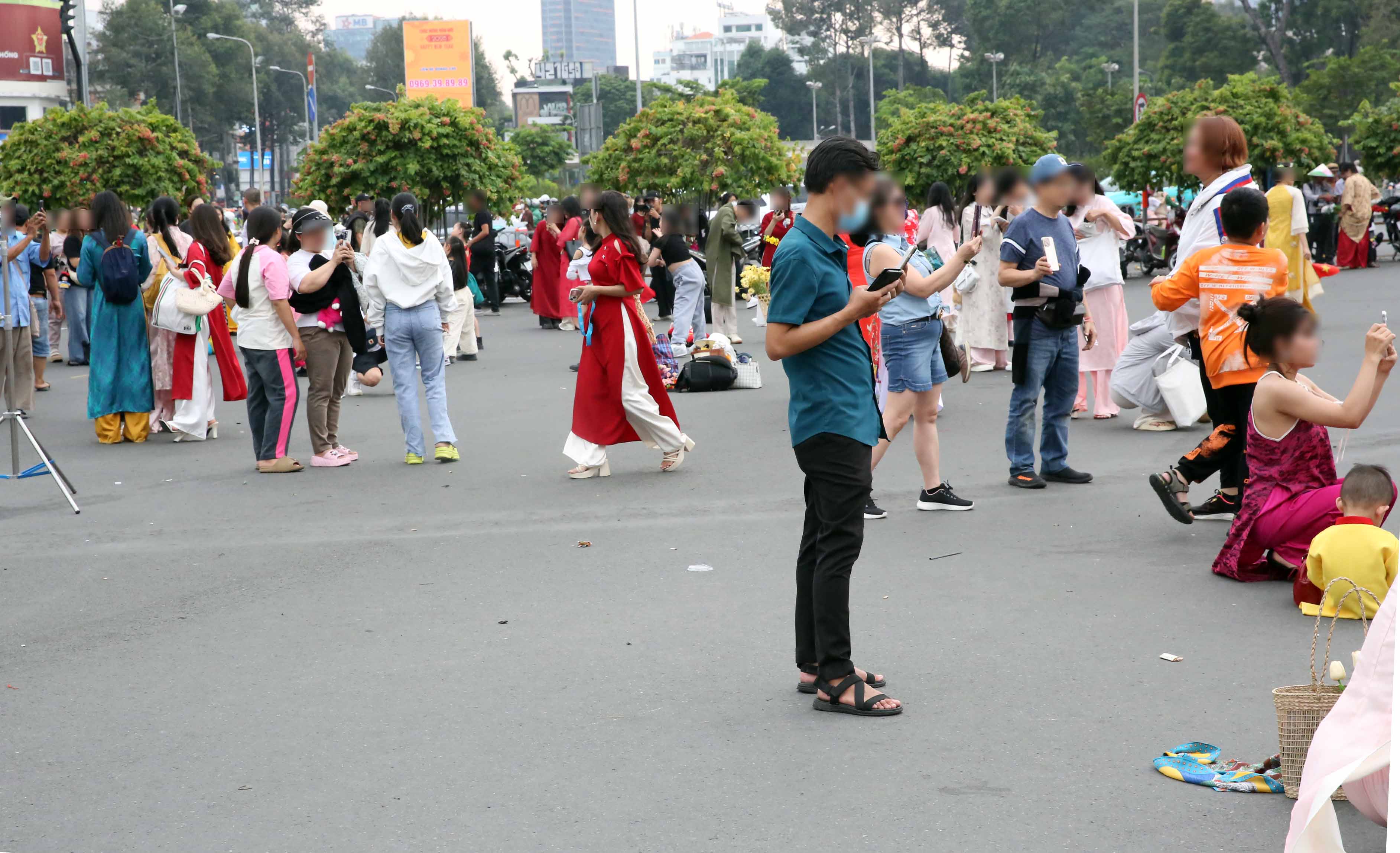 ホーチミンのベンタン市場前の広場にて。半袖の人、ノースリーブの人もいた。