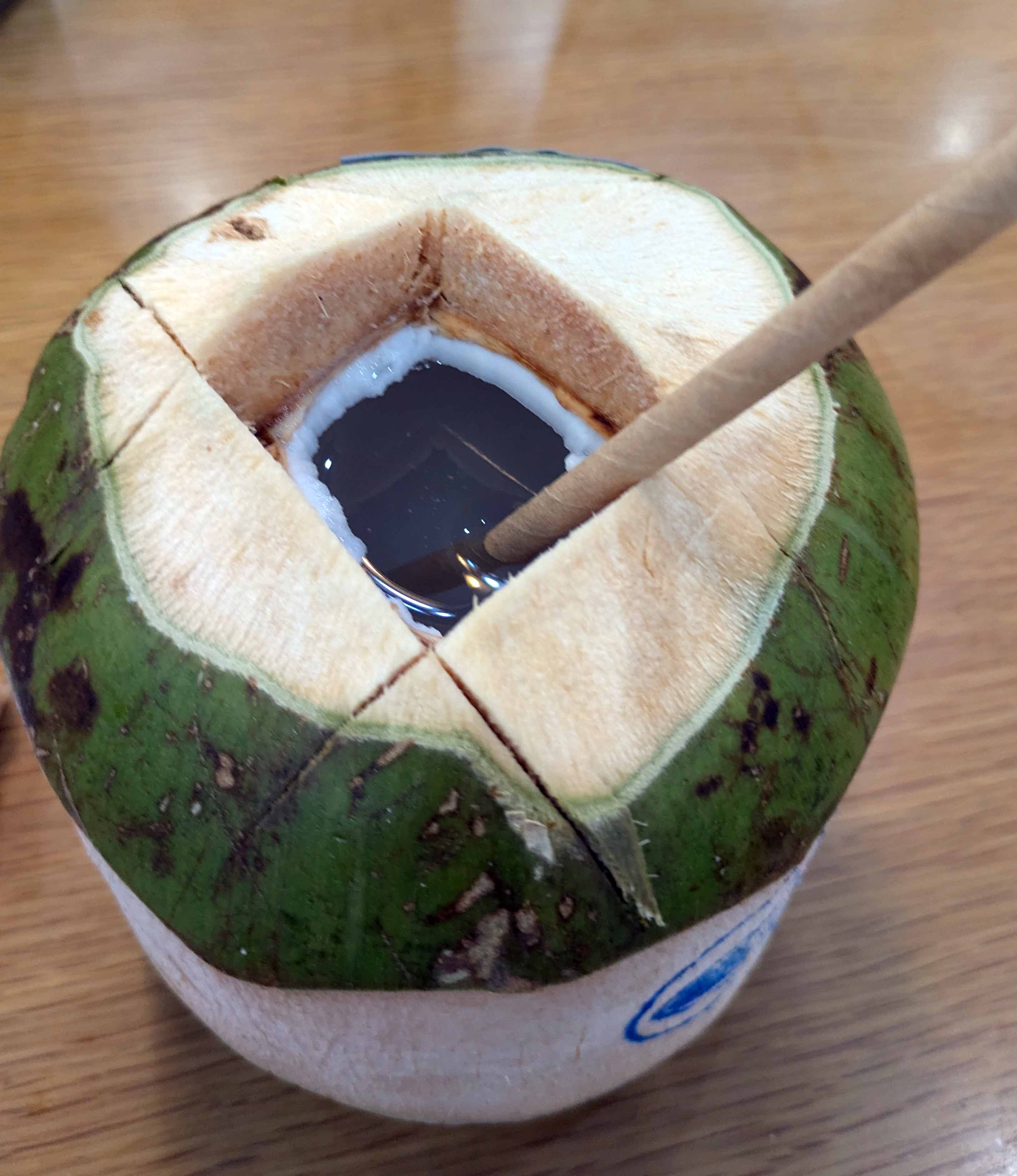 ハノイにも椰子の木(ひょっとしたら、びんろうかも)があり、また空港のレストランで飲んだ、冷やした「椰子の実ジュース」はクセの無い薄い甘さを感じるものでたいへん美味しかった。私には長袖綿シャツにジャケットでちょうどよかった。