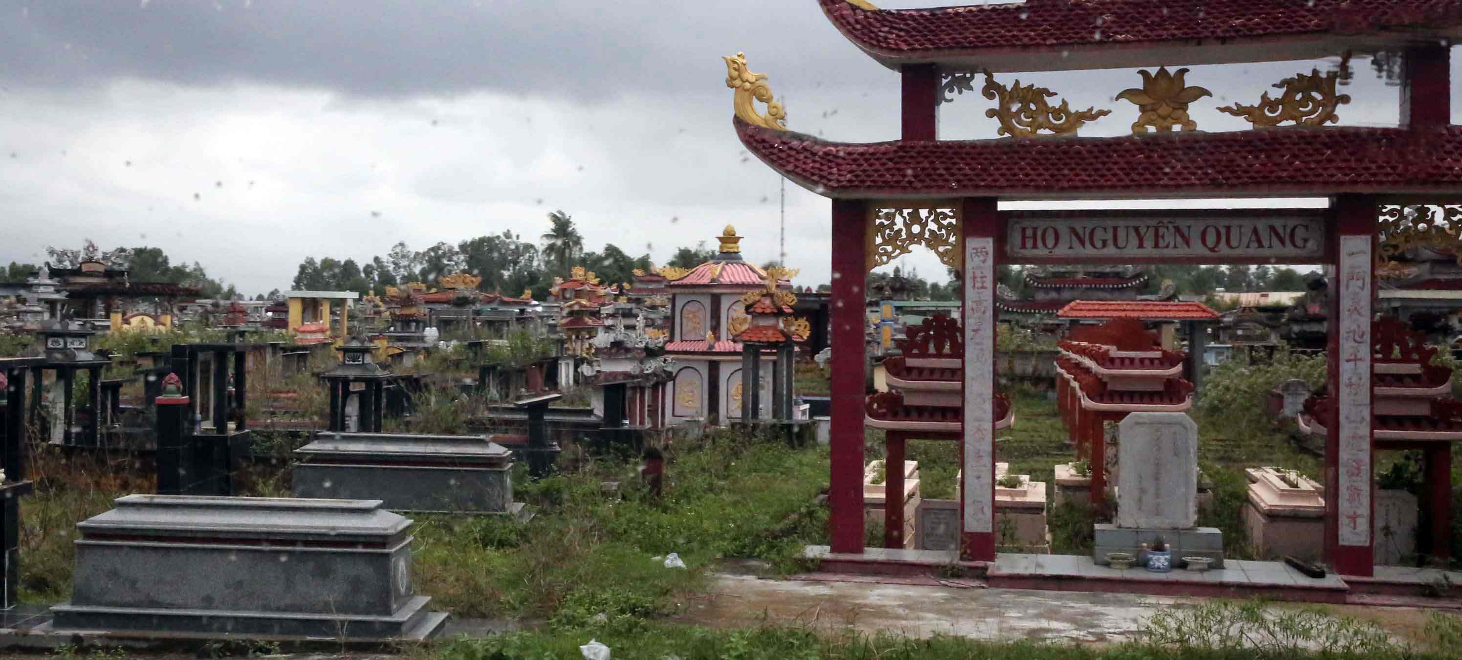 毎日いくつもの墓地や墓を車の中から見ていて、石棺だけ野ざらしのもの、墓標が立っているもの、立派な装飾の「門構え」で多くの墓を囲っているもの、などの区別が見えてきた。いずれも車内から撮った写真のため、手振れや構図が悪いものだということをお断りしておく。またそれぞれの写真のキャプションは私の想像である。