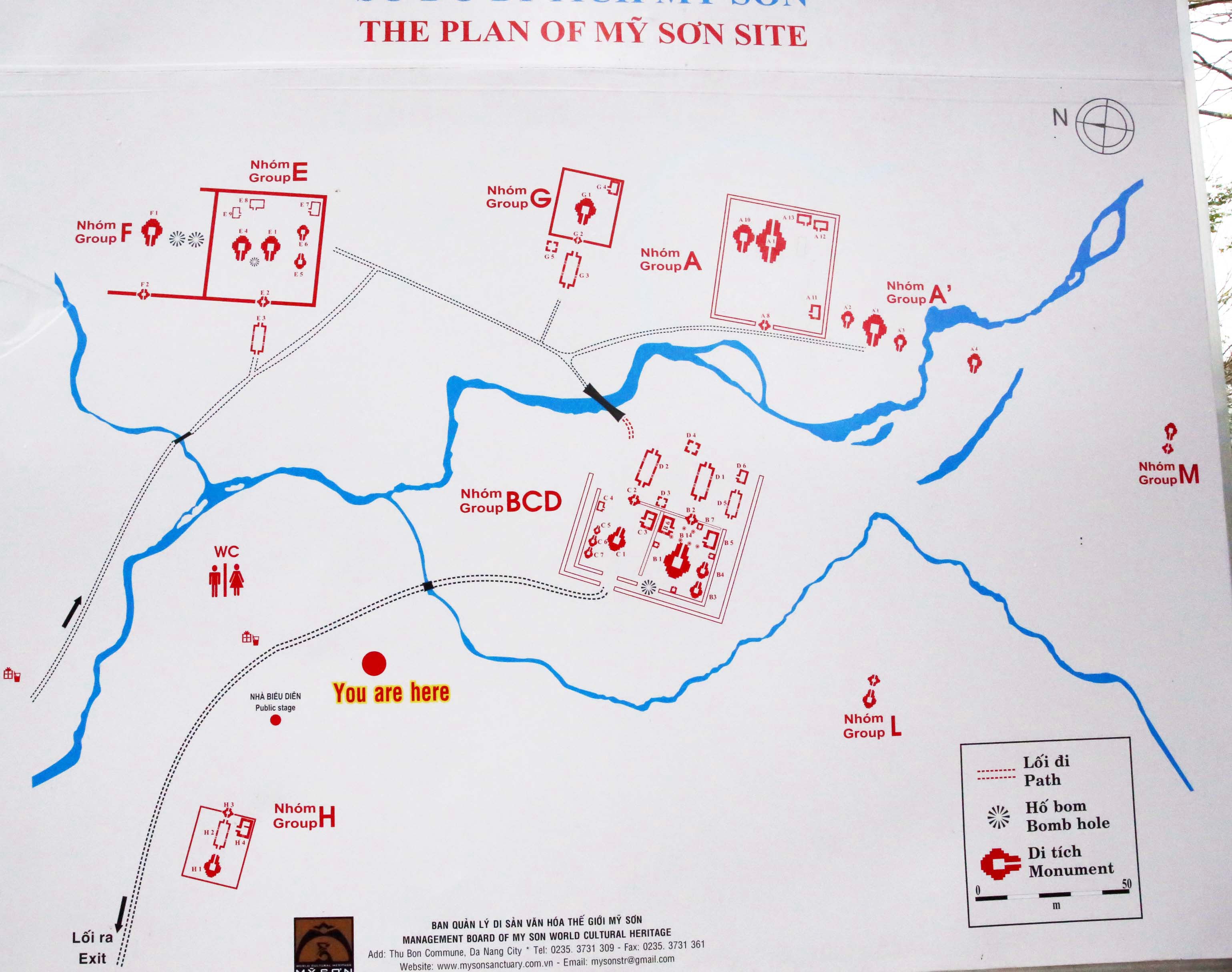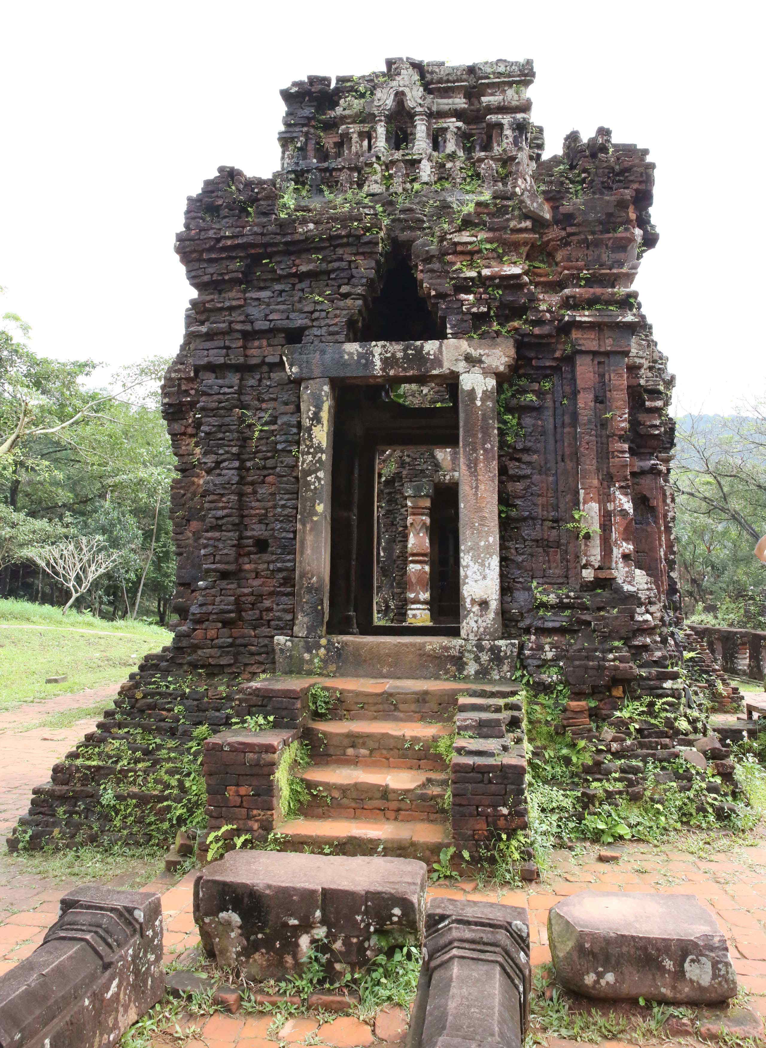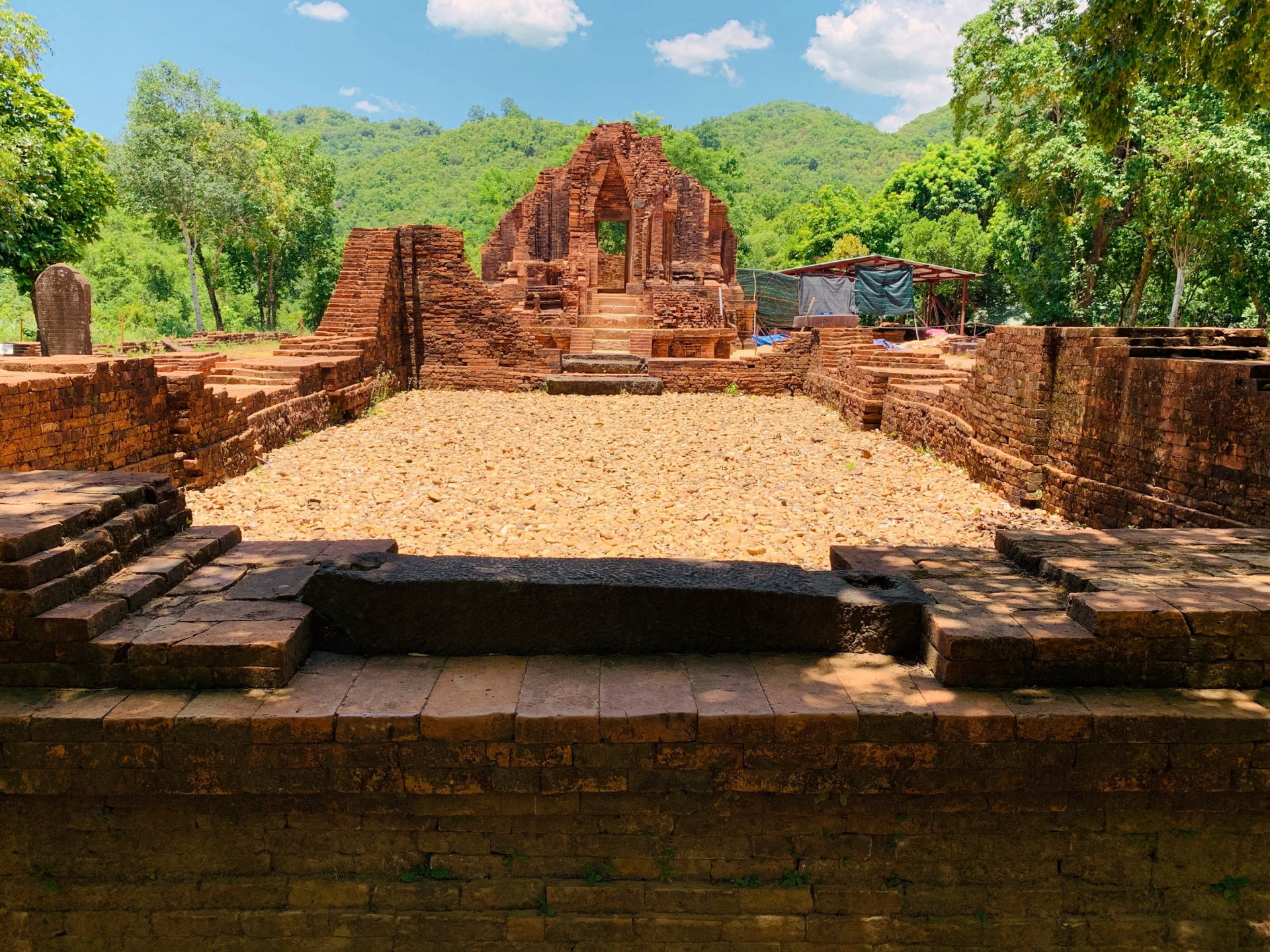 残念ながら天候は良くなく、鷲の頭に似た山の頂上がもう一歩見えなかった。この聖なる山の麓にあることがミーソンが聖地に選ばれた理由。左の遺跡はBCD群