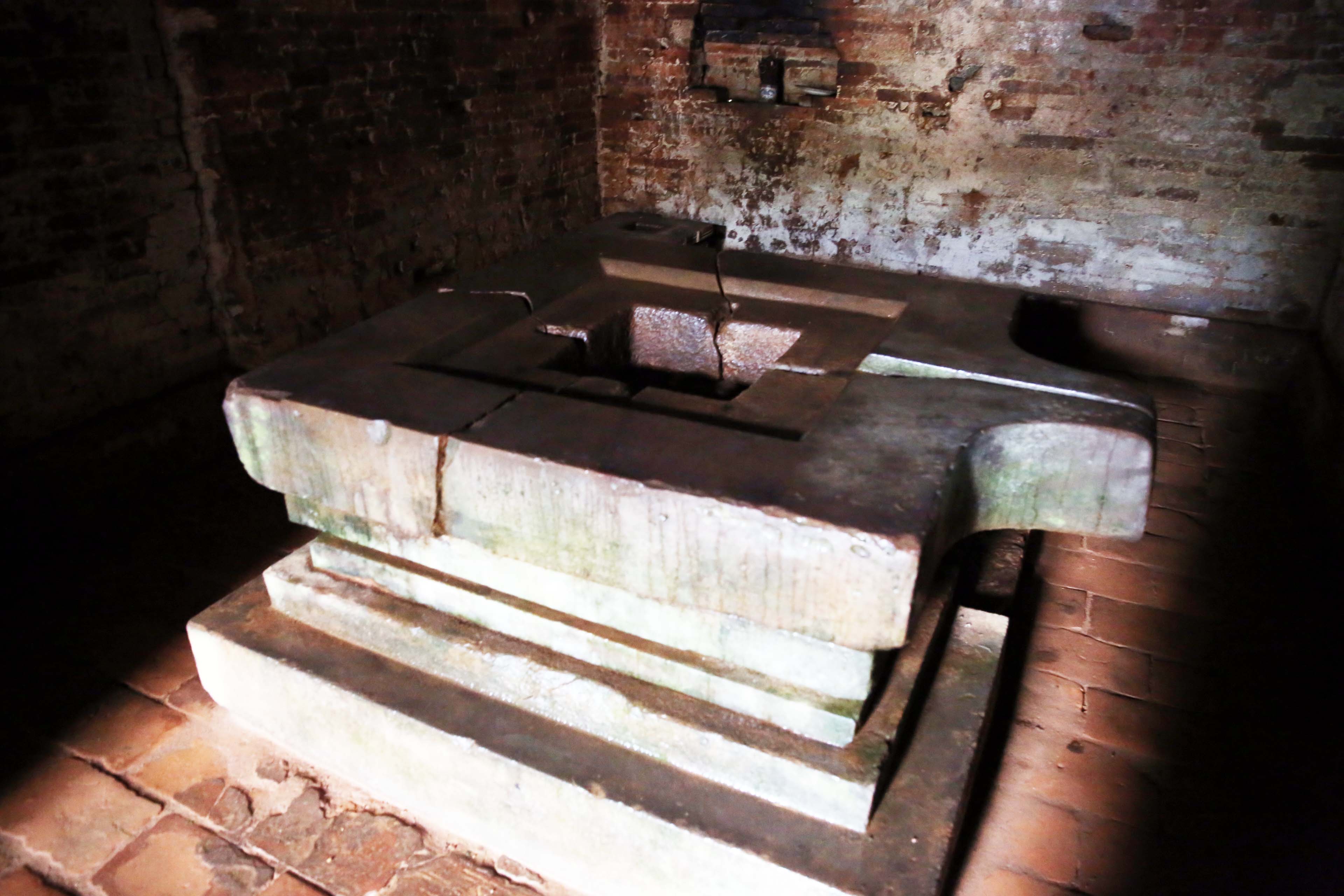 壁面。ベトナム戦争の時の銃弾の痕跡が多く見られる。