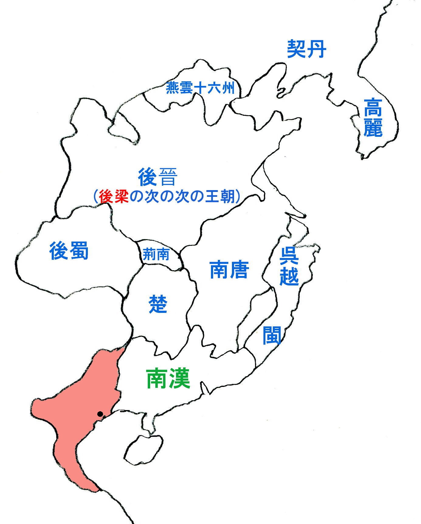 唐が滅亡した後、黄河中流域では「皇帝」を名乗る、後梁(こうりょう)が興り、後に四つの王朝が興亡した(五代)。そのほかの地域では、節度使の流れをくむものなど10余りの国が興亡した(十国)。十国の中には漢の劉氏の後裔と自称し「皇帝」を名乗る「南漢(なんかん)」もあった。917年、曲承裕の孫の曲承美(クク・トゥア・ミー)は、後梁に使者を送って服従し、正式に静海軍節度使の位を授けられた。