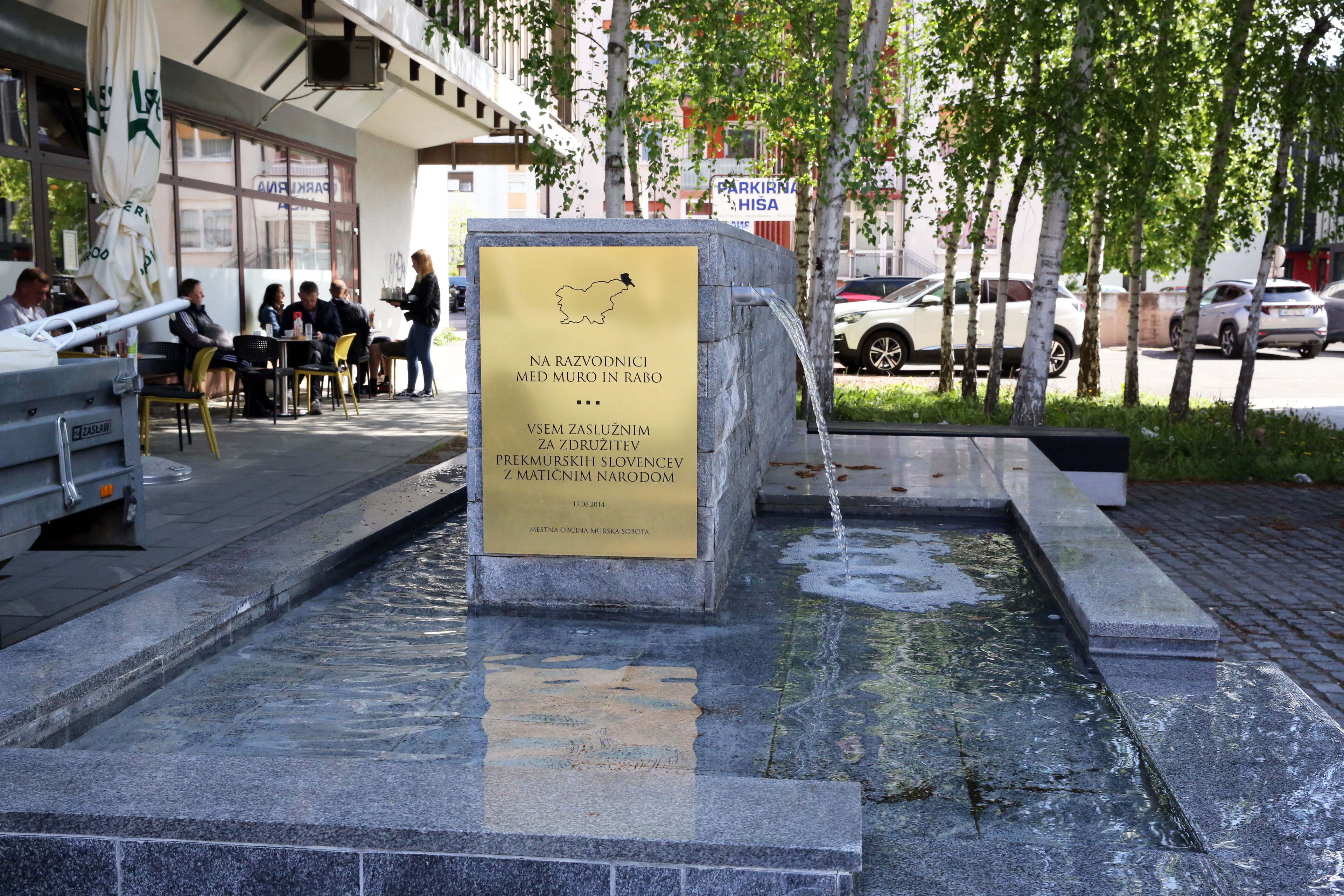 ムルスカソボタ博物館のスロヴェニア編入の展示の一部と、街中で見つけた編入のため尽力した人々への感謝のプレートの付いた水飲み場。