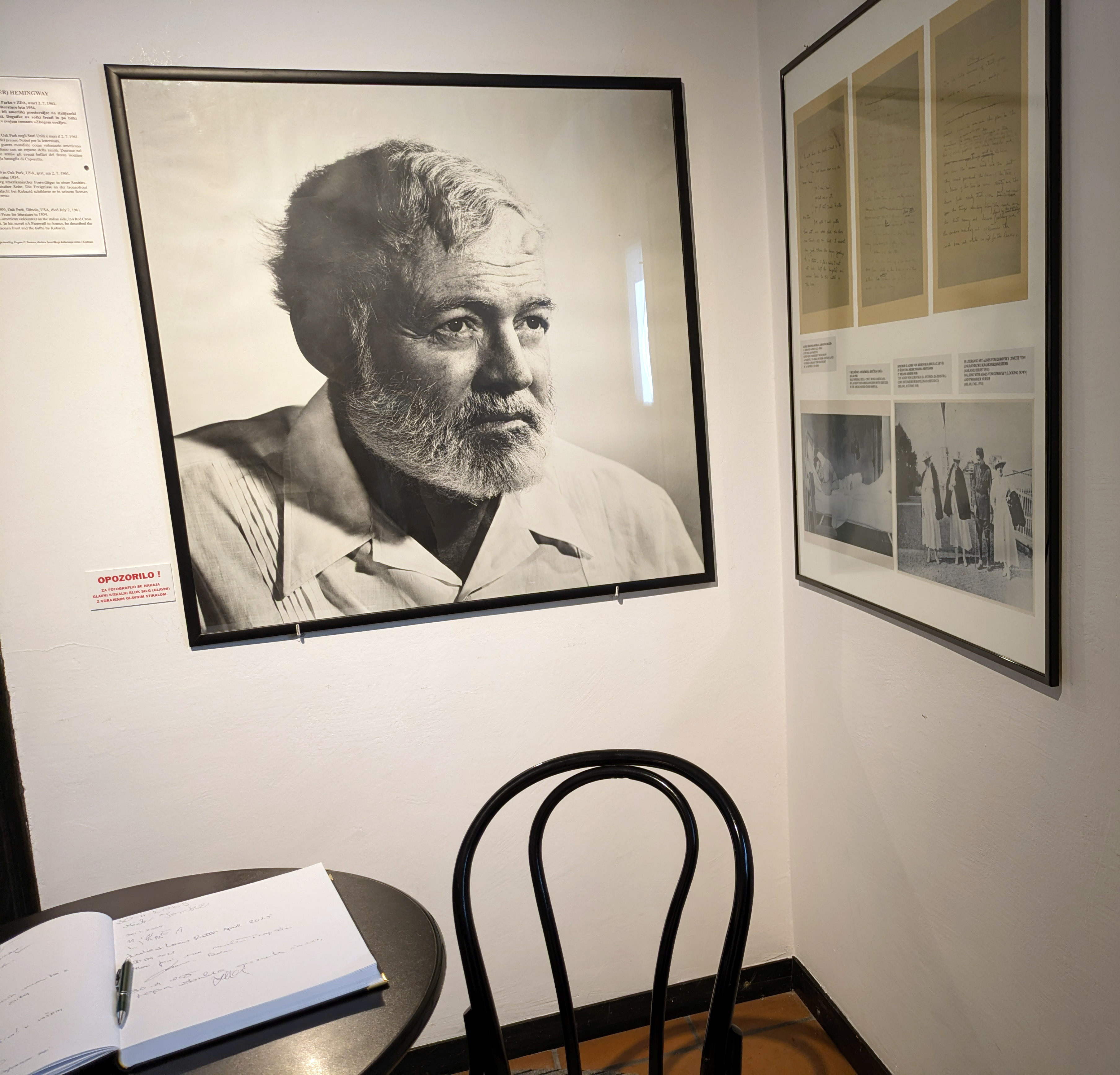 しかし、この後イタリア軍は司令官を交代し、英仏軍の支援も受け、ピアーヴェ川右岸に部隊を分散配置し、自動車による大量の補給網も確保して挽回を図った。1918年6月、一気に決着を付けようと橋を渡って攻撃してきたオーストリア軍に対し、橋を破壊して失敗させ、さらに直接川に入って渡ろうとしたオーストリア軍に反撃し、川の増水もあってオーストリア軍は2万人の死者を出した。反転攻勢の準備を整えて、1918年10月23日、イタリア軍はピアーヴェ川を渡河し、オーストリア軍の指揮、補給の要衝ヴィットリオ・ヴェネトに攻撃を集中して30日に奪取し、オーストリア戦線を南北に分断し、後退路を塞ぎ、補給も途絶えさせた。この後イタリア軍はさらなる大反攻に出て、オーストリア軍に3万人の戦死者を出し、42万人を捕虜として、この戦線で最終的に勝利した。ほぼ同時に、全オーストリア軍から脱走兵が続出し、オーストリア内のチェコでチェコ人の政府が樹立され、ハンガリーで暴動が起きるなどオーストリアは崩壊し敗戦となった。以上の戦争のリアルな状況が、アーネスト・ヘミングウェイの小説『武器よさらば』で描かれている。ヘミングウェイ自身は、アメリカ人として、1918年、19歳だったときアメリカ赤十字の救急隊に志願し、このイタリア戦線に負傷兵の救助をする車の運転手として派遣されていた。ピアーヴェ川周辺で活動していたが、同年7月、砲撃により重傷を負って、ミラノの病院に入院し、そこで7歳年上の看護師、アグネス・フォン・クロウスキーと恋仲となるが、後に破局する。この戦争と失恋の経験が『武器よさらば』のストーリーに生かされ、戦場の生々しい描写となった。ネタバレになるが、この小説の主人公の青年男性も同じ仕事をしていて、1917年ころのどれかの戦いで、塹壕内で敵の砲撃を受けて負傷し、入院した病院で、以前面識のあった看護師と再会して恋に落ちる。前線に復帰するが、カポレットの戦いで敗走を余儀なくされ、イタリア軍上官らによる原隊離脱幹部の射殺に直面したため、川に飛び込み軍を脱走し、おちあった看護師の彼女とボートでスイスへ逃げるが・・・。というストーリーである。この主人公が塹壕内で迫撃砲弾で負傷する際の「・・・溶鉱炉の戸が突然パッとあけ放たれたような閃光がひらめいた。と同時に発した轟音は、最初、頭の中で白く鳴り響き、ついで赤く共鳴し、突風の中でいつまでも鳴り止まなかった。なんとか呼吸しようとしたのだが、息をつけない。自分が体の外に吹き飛ばされたような感じがした。・・」(新潮文庫 高見 浩訳p92)という描写はすごくリアルで、ヘミングウェイ自身の被爆負傷体験が元になっていると感じた。コバリドの博物館には、彼についての展示もなされている。スロヴェニアから見ると、彼は「敵」の一員だったことになる。