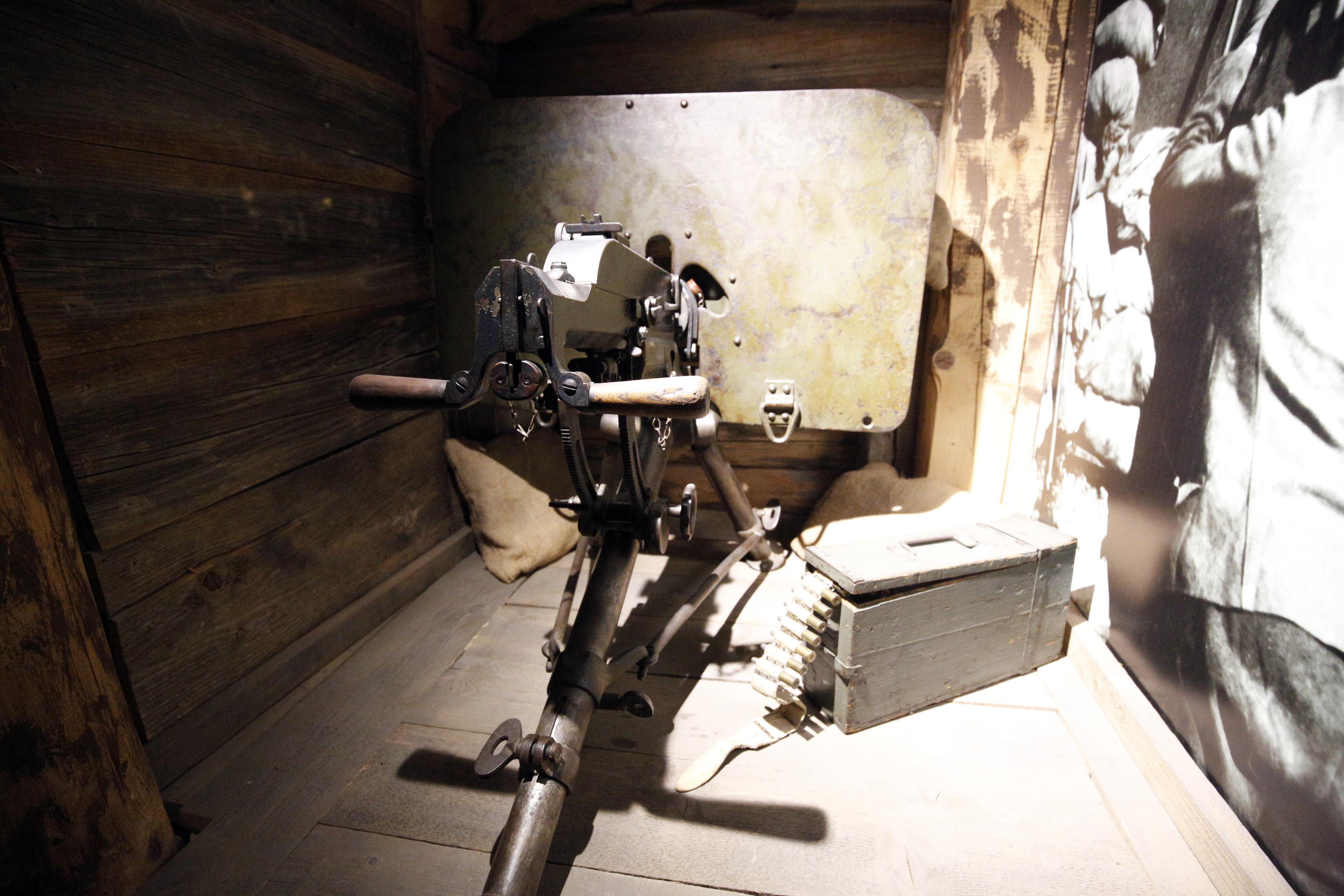 左はMG08(Maschinengewehr 08)約400〜500発/分。コバリド博物館。右はSchwarzlose M07/12。約400発/分。スロベニア近現代史博物館。共にオーストリア軍のよく使っていた機関銃。